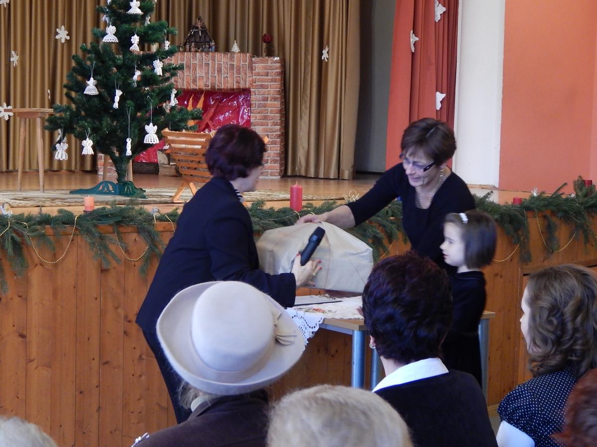 Dr. Hajdú Vilma a Vöröskereszt és a Városi Óvodák Gyerekeiért Alapítvány elnöke ajándékokat adott át az óvodák ifjú és pedagógus képviselőinek.