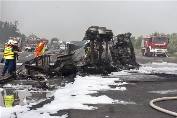 Kigyulladt egy kamion az autópályán, meghalt a sofőr