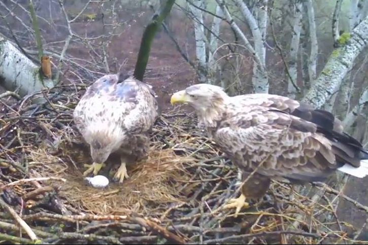 Bármelynapos a rétisas-tojás a Duna-Dráva Nemzeti Park bekamerázott rétisas fészkében. A tojó közel 40 napja rakta a két tojást, a szakemberek szerint akár húsvét előtt is kikelhetnek a kis fiókák.