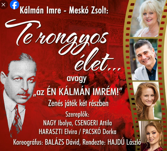 A színdarabban olyan színészek lépnek színpadra, mint Nagy Ibolya, Csengeri Attila, Harasztia Elvira és Pacskó Dorka. A darabot Hajdú László rendezte, Balázs Dávid pedig koreografálta. Kálmán Imre sorsa maga is „operettbe illő” volt. Különös életet élt, különös sors jutott Neki osztályrészül. Hallatlanul népszerű muzsikáját már 100 éve kedveli ország-világ. Életének nagy szerelmei, sikerei és buktatói is megjelennek a darabban, hisz például a majd 30 évvel fiatalabb felesége viharos életet „biztosított” számára. Vera nyughatatlan, szenvedélyes nő volt, akit nehéz volt megszelídíteni. Életének története mellett, természetesen legnépszerűbb slágereit is hallhatja majd a közönség, pl. Te rongyos élet /Mondd meg hogy imádom, a Pesti nőket /Álom álom, édes álom / Túl az Óperencián / Hej cigány és a Hajmási Péter. Jegyek elővételben megvásárolhatók a Móricz Zsigmond Művelődési Központban, vagy a nagyibolya.hu weblapon.