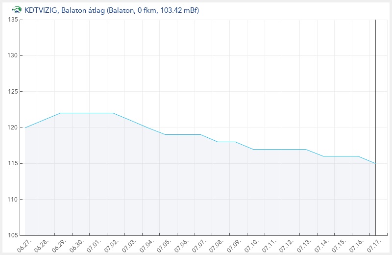 A Balaton átlagos vízállása szerdára – a vizugy.hu adatai szerint – újabb egy centiméternyivel csökkent, jelenleg 115 centi. Ez jónak számít július közepén. A hosszú hőségriadó ellenére visszafogottabb a párolgási veszteség, ami annak tudható be, hogy nem voltak erős szelek az elmúlt időszakban. A víz hőmérséklete szerdán kora reggel Siófoknál 27,5 Celsius fokos volt, amit jóval vízszint alatt mérnek, vagyis ennél pár fokkal melegebb vízre számíthatunk a strandokon. Az üdülőrégióban ma a legmagasabb nappali hőmérséklet 33-34 fok körül alakul. Késő estére 26-27 fok köré hűl le a levegő.