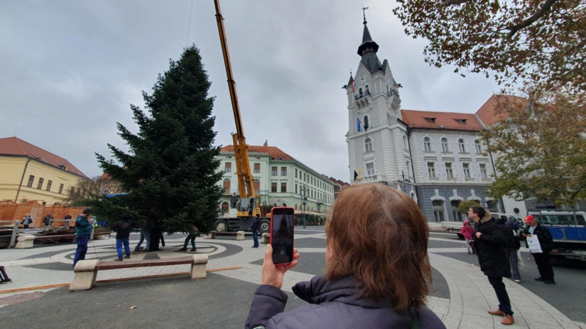 A fát ma reggel vágták ki, majd szállították a Kossuth térre. Megerősített tartókonzolba helyezték a fatörzset, valamint egyköbméteres IBC tartályokhoz kötözték. Ebből később semmi nem látszik, mert a tartályok faborítást kapnak, a drótköteleket pedig ledfüzérrel fonják be. A díszítés azonban csak a fa körbe állványozása után kezdődhet, ez szükséges, hogy minden ágat elérjenek, mindenhol legyen fényfüzér, és javításokat is végezhessenek a fán. Ehhez idő kell, ezért állítják fel korán a fát. A karácsonyi teljes körképhez azonban még szükségesek a vásári faházak, a köztéri fényfűzérek, és a városi adventi koszorú is a szökőkúton.