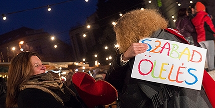 Pécsett a Széchenyi téren járókat lepték meg szombaton egy-egy öleléssel a Szeretet Kommandó lelkes tagjai. A karácsonyi forgatagban mindenkinek jólesett a meglepetés.